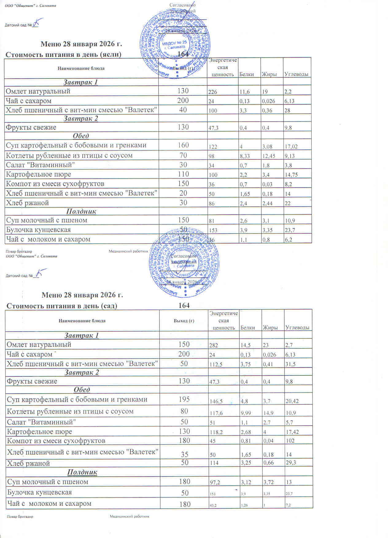С октября 2017 года МБДОУ № 25 г. Салавата передал функции по организации горячего питания детей сторонней организации – Муниципальному унитарному предприятию «Общепит» г. Салавата