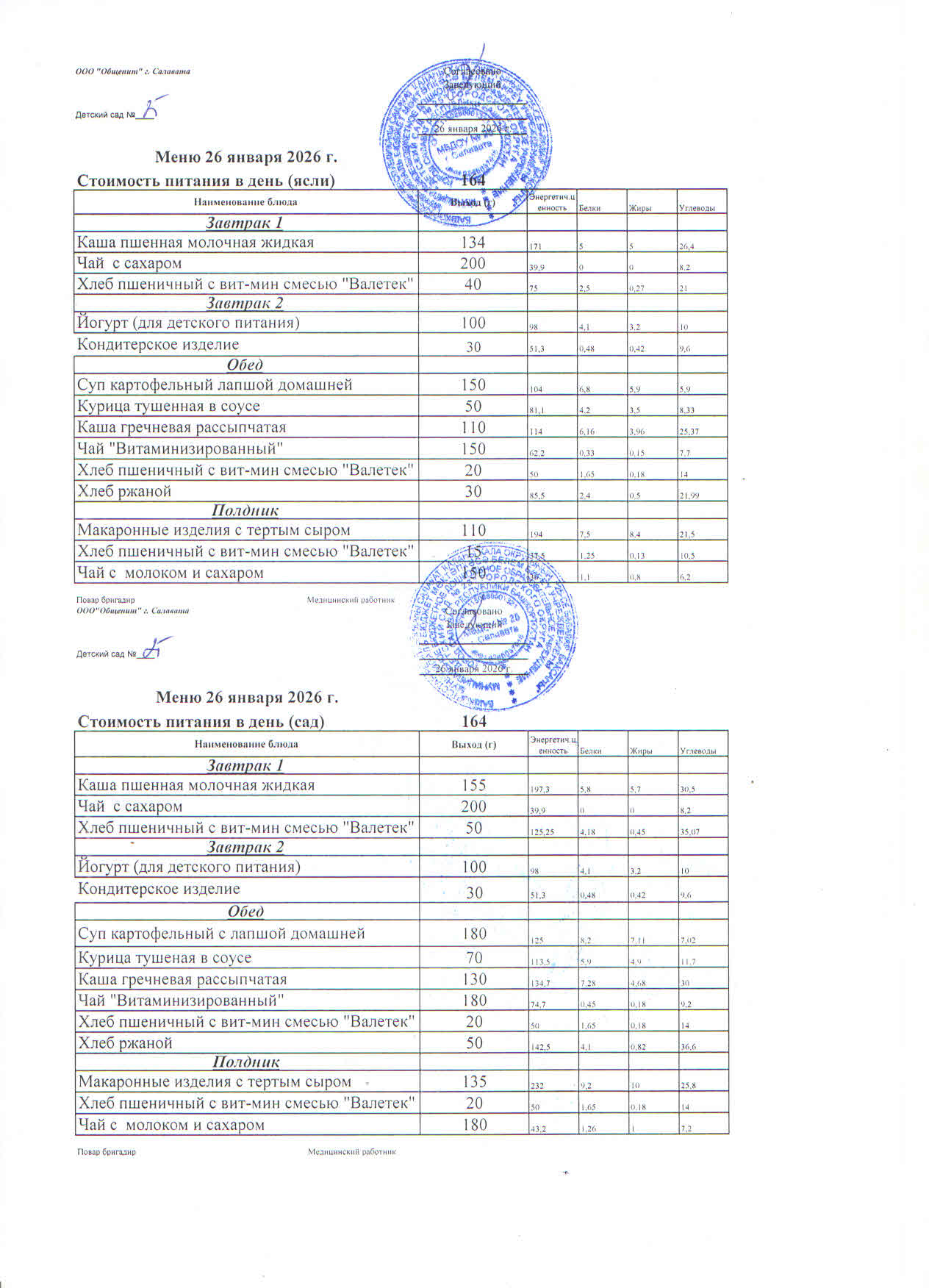 Меню ежедневного горячего питания